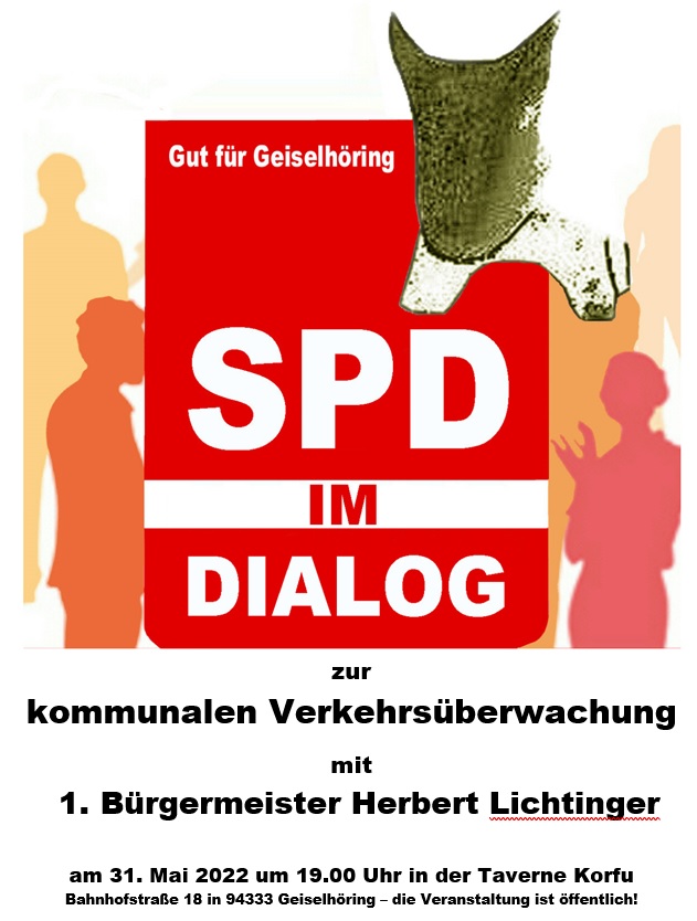 Die Geiselhöringer SPD befasst sich bei der Dialog-Veranstaltung am 31. Mai um 19 Uhr in der Taverne Korfu mit der kommunalen Verkehrsüberwachung in Geiselhöring und konnte als Dialog-Partner den 1. Bürgermeister Herbert Lichtinger gewinnen.